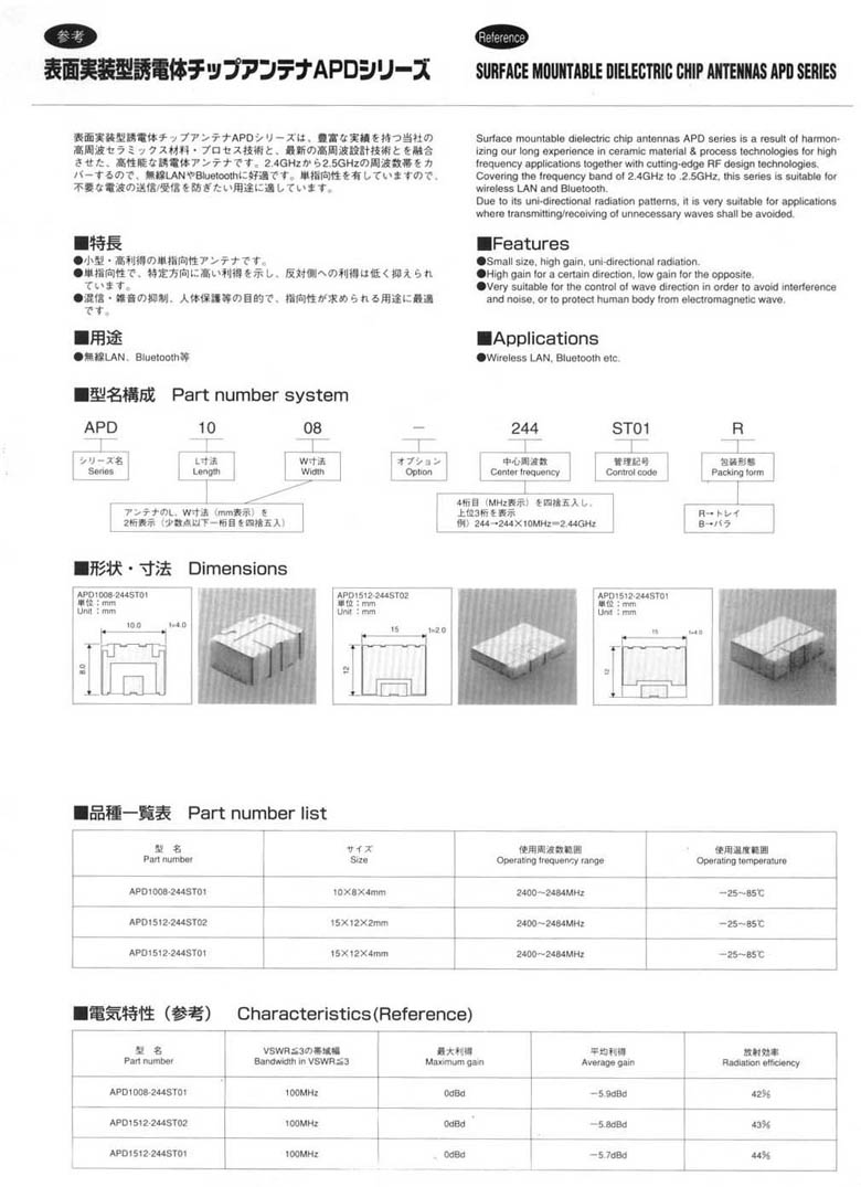 | BLUETOOTH ANTENNAS 藍牙天線 |
